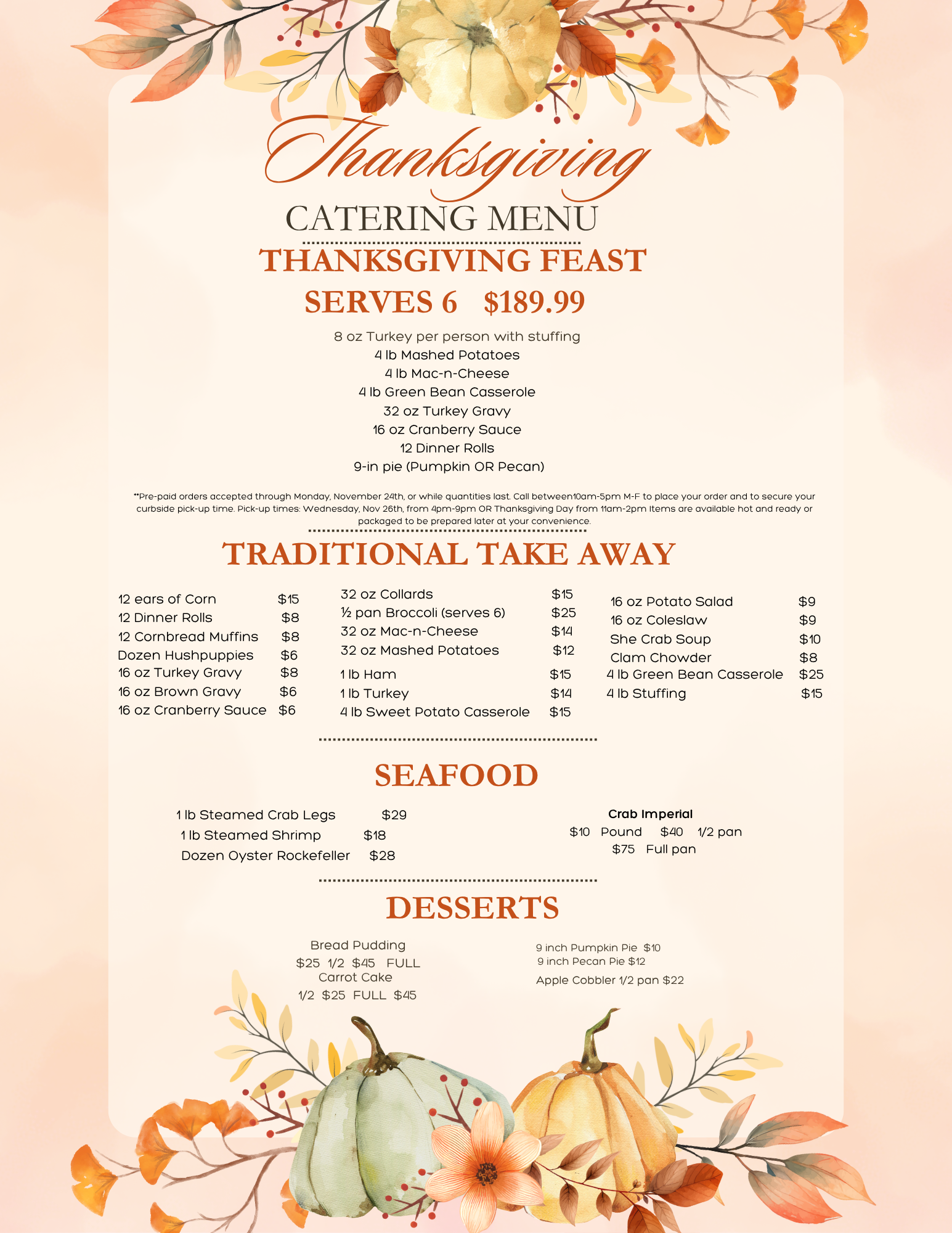 Please place catering orders Mon-Fri 10 am - 5 pm.